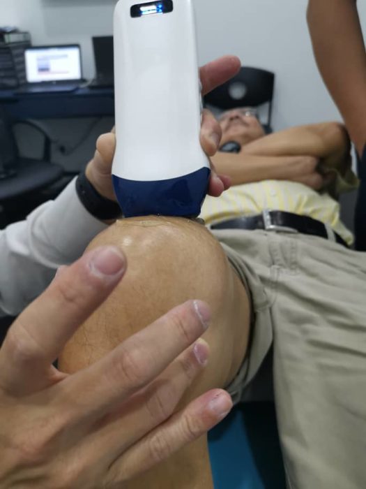Ultrasound imaging uses sound waves to produce pictures of muscles, tendons, ligaments, nerves and joints throughout the body. It is used to help to localizing the sprains, strains, tears, trapped nerve, arthritis, and other musculoskeletal conditions. Ultrasound is safe, noninvasive, and does not use ionizing radiation. Ultrasound guidance combine the extracorporeal shockwave therapy also have the advantage of giving physiotherapist to localize the treating injury sites more accurately .