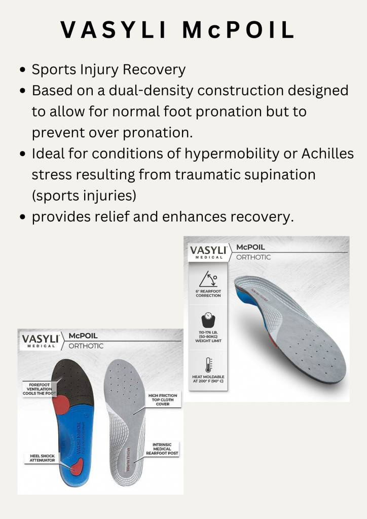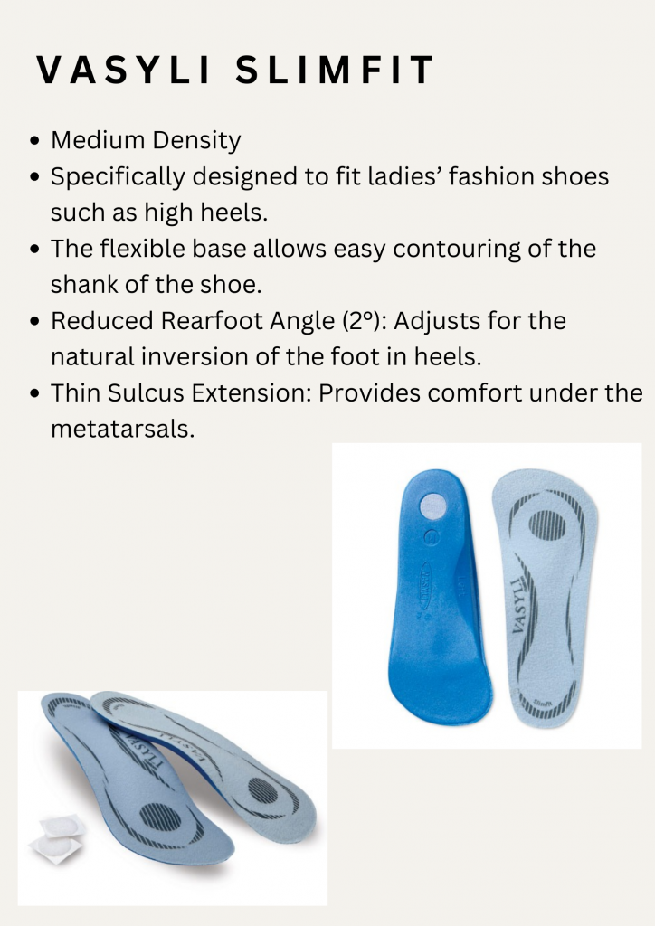 At our clinic, we’re proud to offer VASYLI Medical Orthotics, a trusted solution for patients seeking effective foot and lower limb support. Designed by leading podiatrists, these prefabricated orthotics provide a customized fit, bringing the benefits of biomechanical correction within reach—without the wait or cost of custom devices.