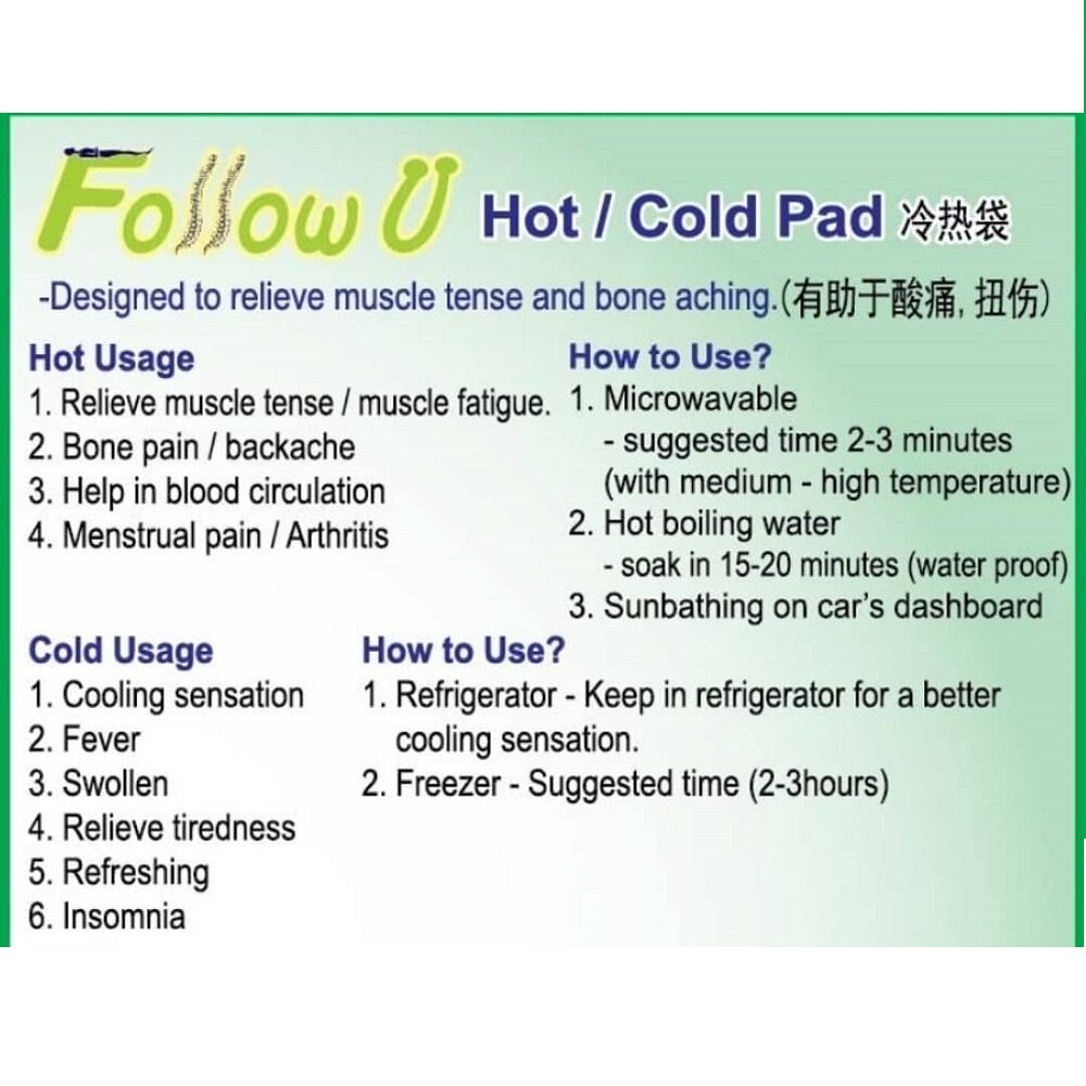 The Follow U Hot/Cold Pad is a reusable, flexible gel pad designed to provide soothing heat or cold therapy. Ideal for muscle aches, joint pain, injuries, or post-treatment care.