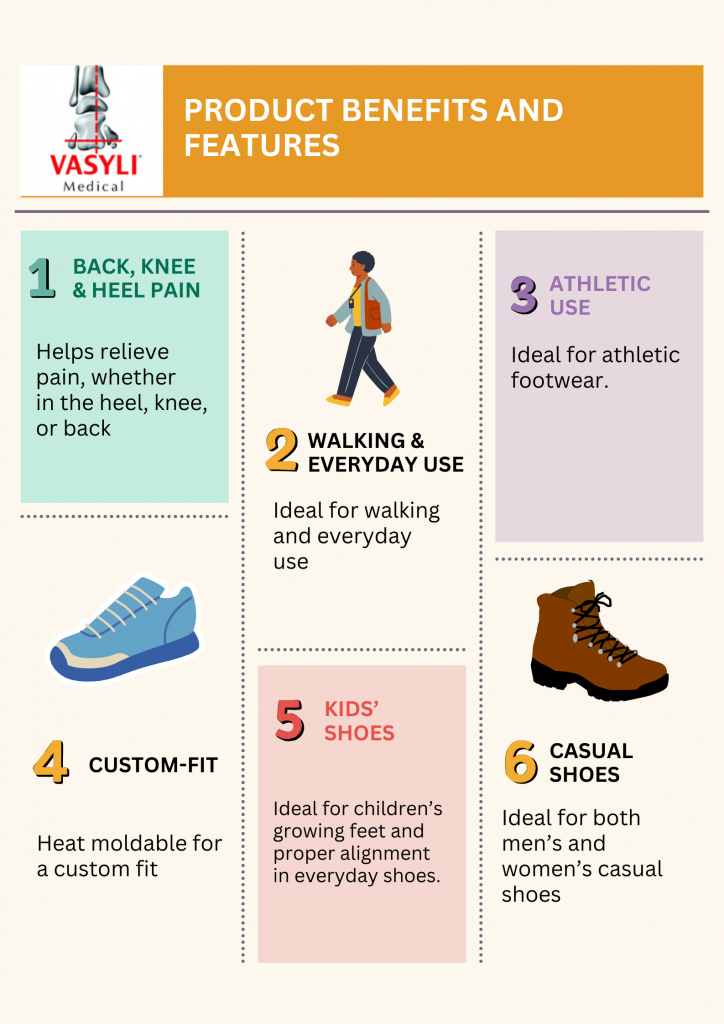 Whether you’re managing flat feet, heel pain, overpronation, or knee and back discomfort linked to poor foot alignment, VASYLI orthotics are engineered to improve your posture, enhance your gait, and relieve strain on your joints.