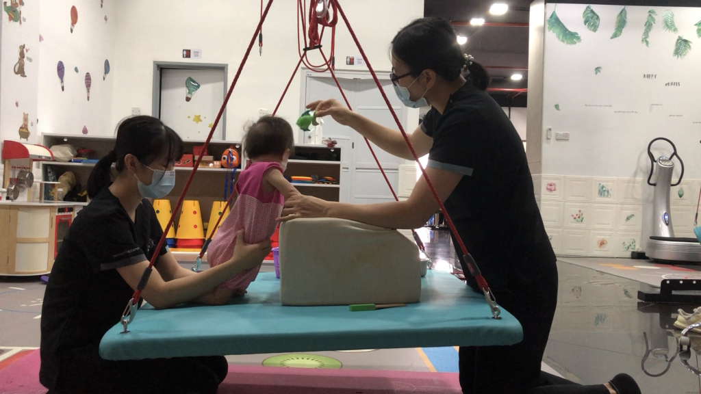 Under unstable conditions, it will stimulate the stability of local stabilizing muscles to prevent the occurence of spasticity. Training in open chain and closed chain movements increases proprioception and strengthens the feedback inside and outside of the joints. During the process of weightlessness, self-weight, etc, it can perform strength coordination training accurately. It can integrate nerve development therapy, sensory integration training, and guidance education. It can alleviate muscle tension, enhance muscle strength, and improve balance and coordination. The learning can be completed in the children’s active exercise.